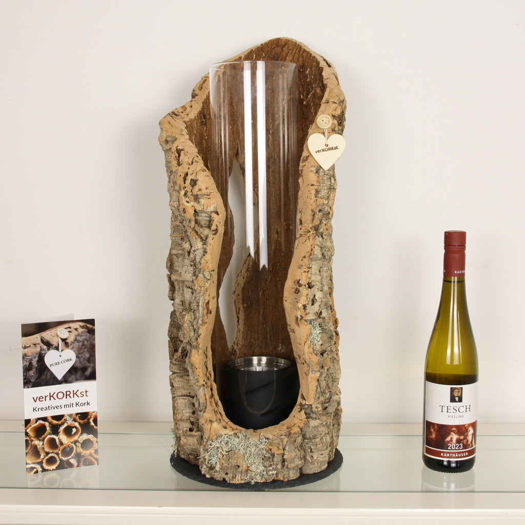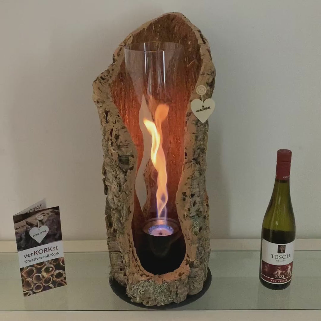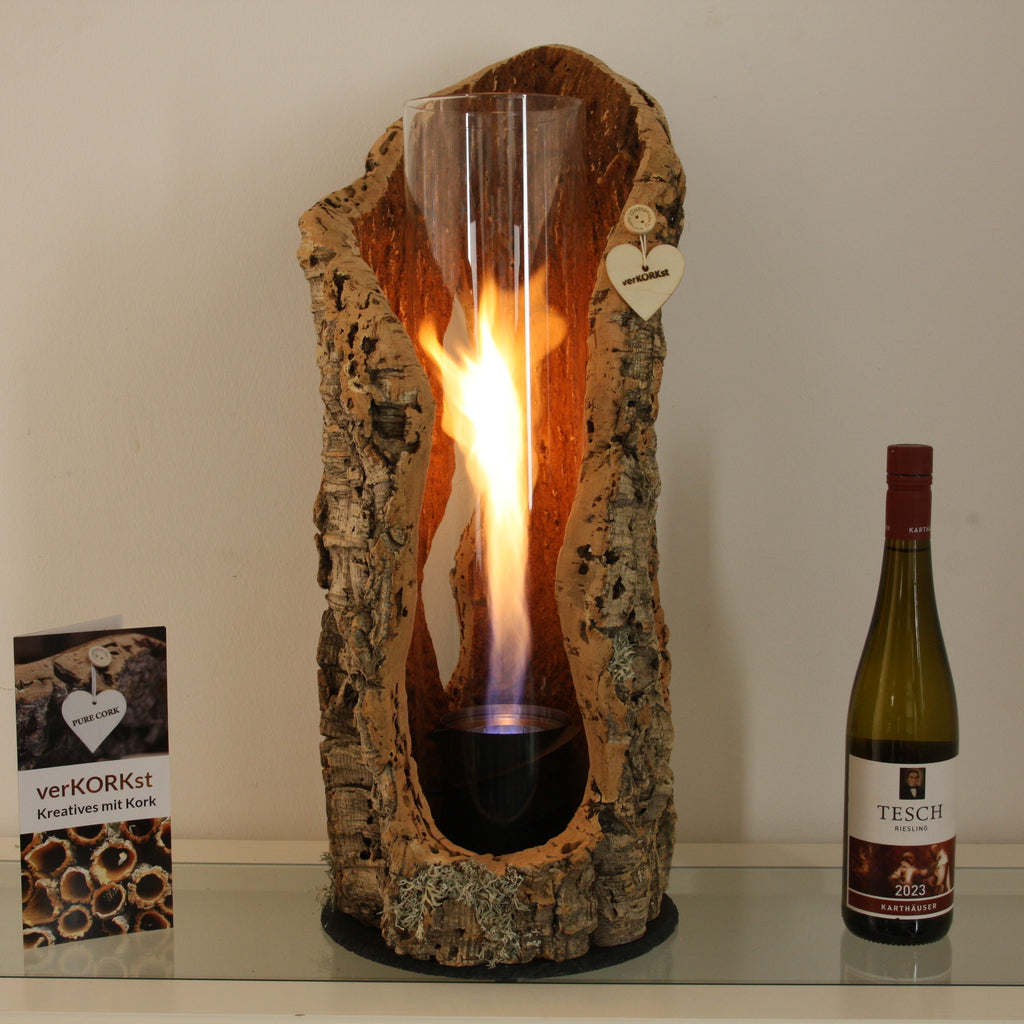 TIMELESSLY ELEGANT DESIGN - The handmade cork bark table fires from verKORKst lend your home charm and an individual touch. This cork table torch decoration for indoor and outdoor use impresses with its unique design and is a real eye-catcher. Enjoy a magical atmosphere as if by magic – a truly exceptional gift.
