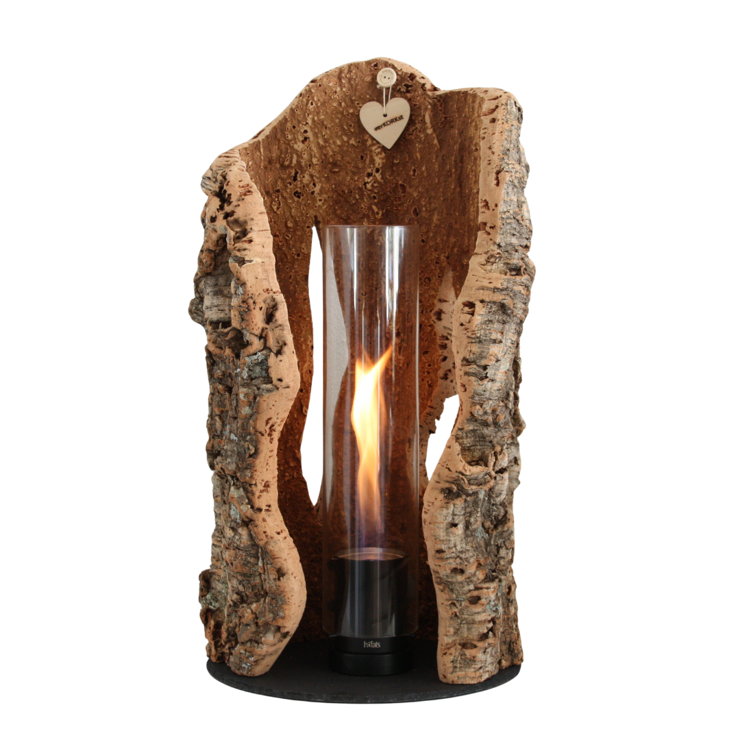 Tischfeuer in Korkrinde - für Innen und Außen - faszinierend und erwärmend