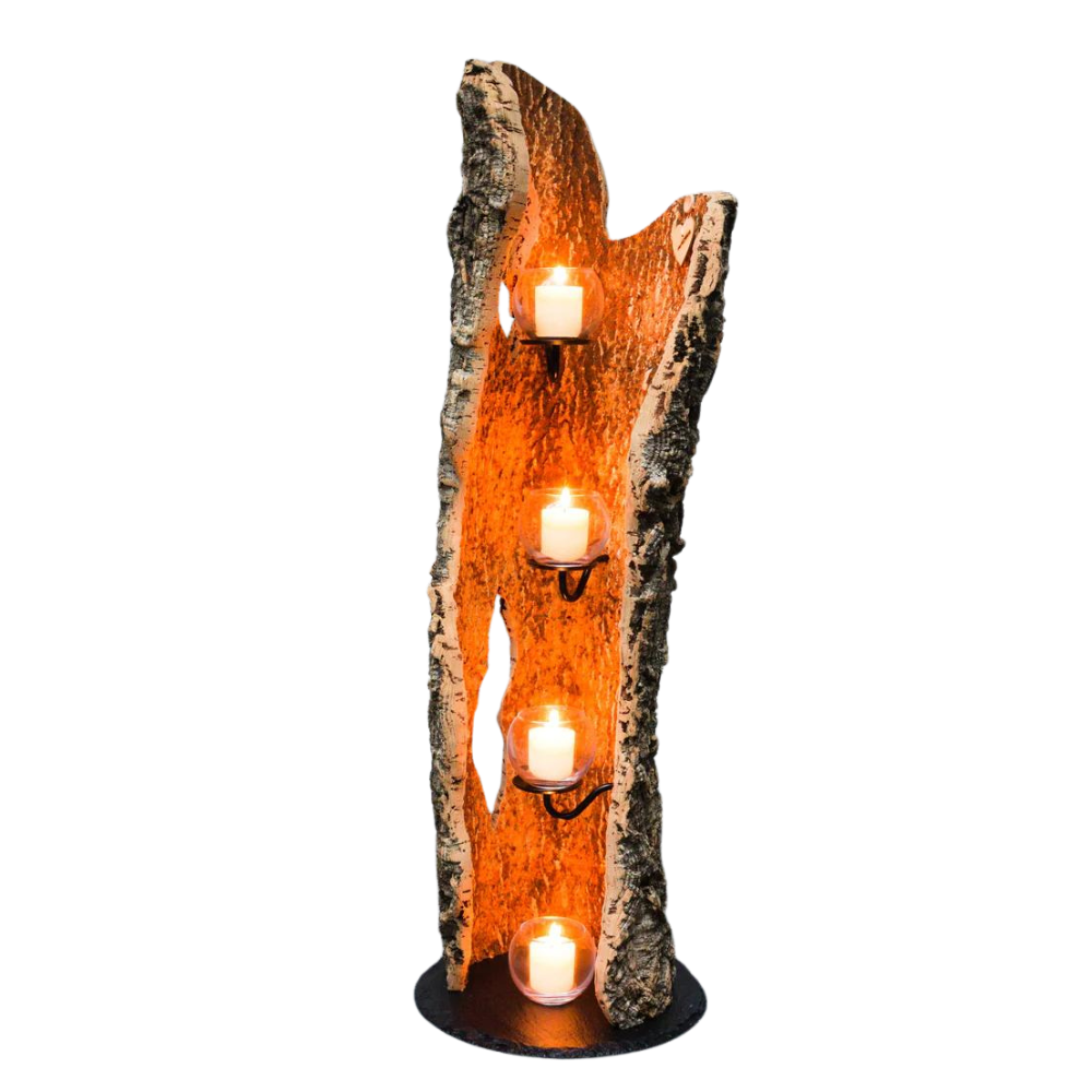 verKORKst Premium Wandfeuer in Korkrinde * Wandfackel * Indoor und Outdoor * kein Mindestabstand * Tischfeuer SPIN900 höfats Kempten * handmade in Germany