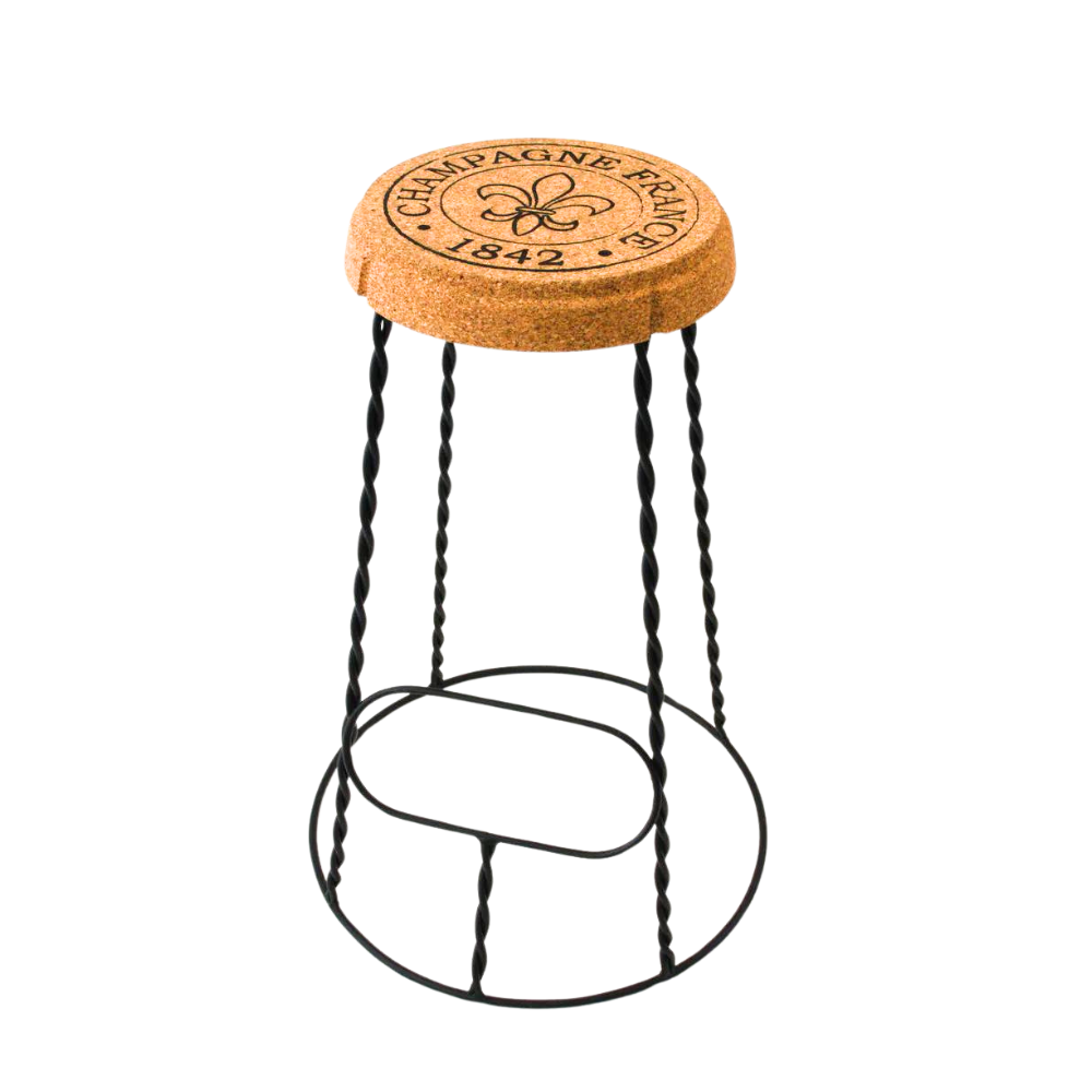 Plus que 2 en stockBarhocker aus Kork und pulverbeschichtetem Stahl in Muselet Form * mit Ihrem eigenen Logo oder Text individualisierbar