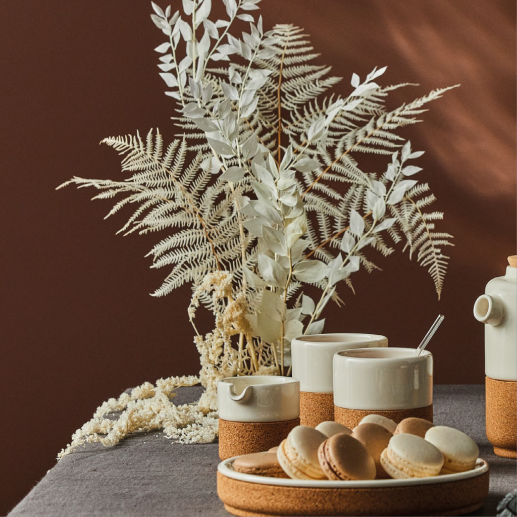 Unser Geschirr aus Kork und Keramik sorgt für natürliche Atmosphäre in Ihrer Küche, Bar und auf Ihrem Esstisch oder Wohnzimmertisch. Neben seiner Schönheit ist Kork auch ein unfassbar strapazierbares Material. Er ist feuerfest und wasserabweisend, leicht und dadurch sehr handlich. Zudem isoliert Kork hervorragend.