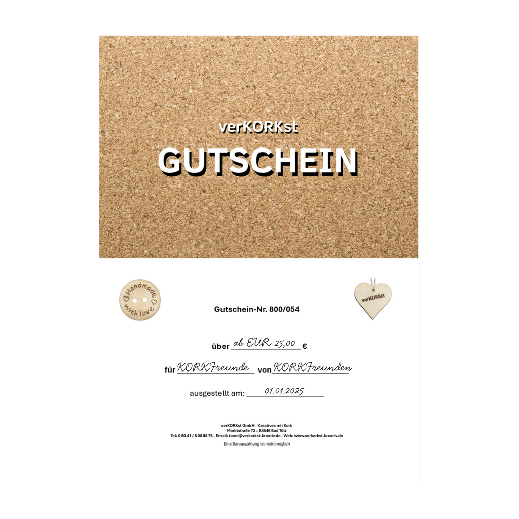Mit einem Gutschein von verKORKst verschenken Sie Nachhaltigkeit und Einzigartigkeit