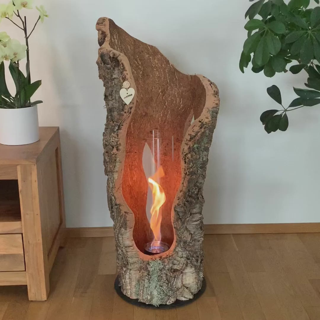 Durch die Verwendung von Bio-Ethanol kann unser Tischfeuer in Korkrinde auch Indoor verwendet werden
