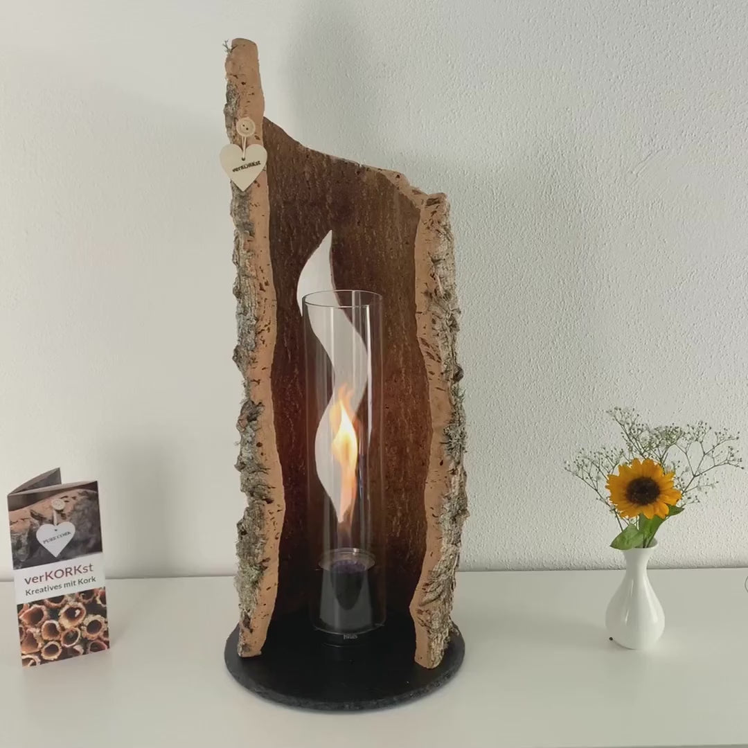 Das angenehme Tischfeuer in Korkrinde sorgt für gemütliche Stimmung im Wohnbereich, Eingangsbereich, Außenbereich, auf dem Balkon oder auf der Terrasse. Neben seiner Schönheit ist Kork auch ein unfassbar strapazierbares Material. Er ist feuerfest und wasserabweisend, leicht und dadurch sehr handlich.