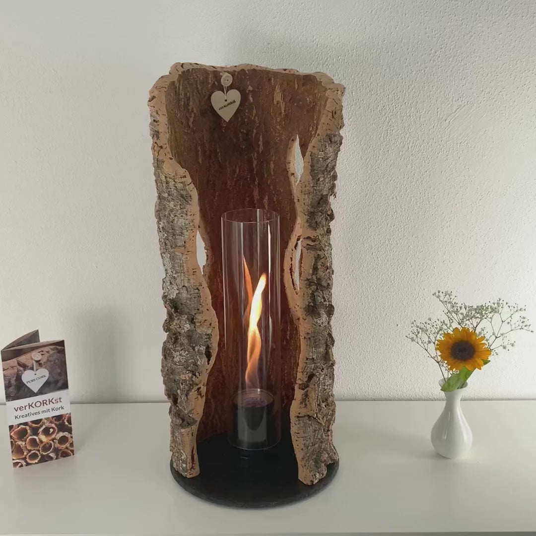 Das angenehme Tischfeuer in Korkrinde sorgt für gemütliche Stimmung im Wohnbereich, Eingangsbereich, Außenbereich, auf dem Balkon oder auf der Terrasse. Neben seiner Schönheit ist Kork auch ein unfassbar strapazierbares Material. Er ist feuerfest und wasserabweisend, leicht und dadurch sehr handlich.