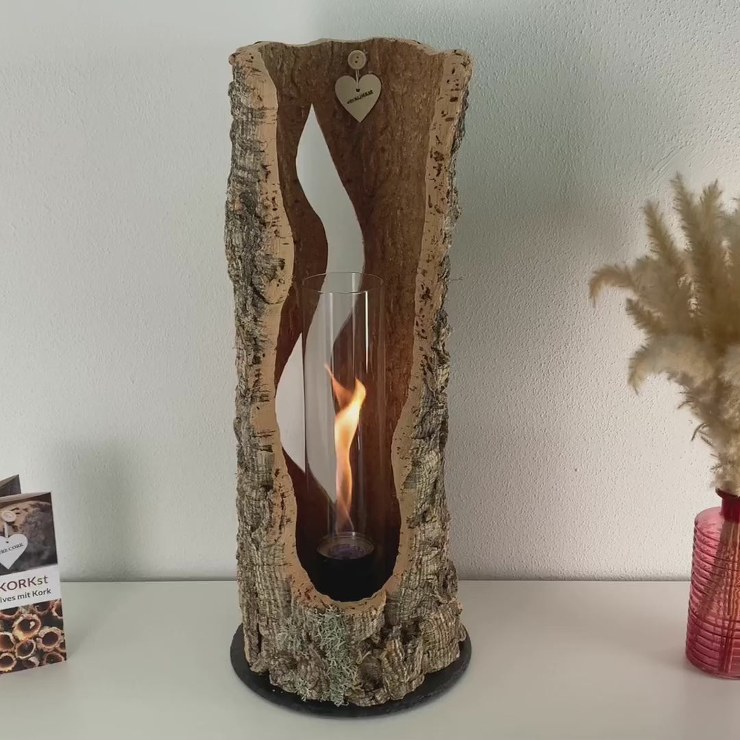 Das angenehme Tischfeuer in Korkrinde sorgt für gemütliche Stimmung im Wohnbereich, Eingangsbereich, Außenbereich, auf dem Balkon oder auf der Terrasse. Neben seiner Schönheit ist Kork auch ein unfassbar strapazierbares Material. Er ist feuerfest und wasserabweisend, leicht und dadurch sehr handlich.