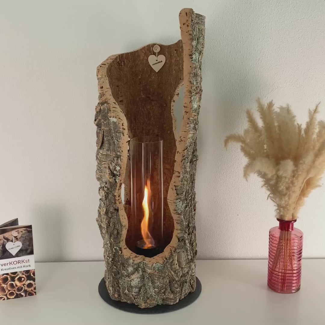 Das angenehme Tischfeuer in Korkrinde sorgt für gemütliche Stimmung im Wohnbereich, Eingangsbereich, Außenbereich, auf dem Balkon oder auf der Terrasse. Neben seiner Schönheit ist Kork auch ein unfassbar strapazierbares Material. Er ist feuerfest und wasserabweisend, leicht und dadurch sehr handlich.