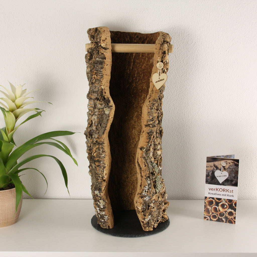 verKORKst – das sind besondere Unikate aus Rinden der spanischen Korkeiche. Von WC-Rollen Spender und Windlichter über Küchen Dekoration bis zu hochwertigen Wohnzimmer Dekorationen – Kork kann viel mehr als nur Flaschen verschließen und Notizzettel halten.