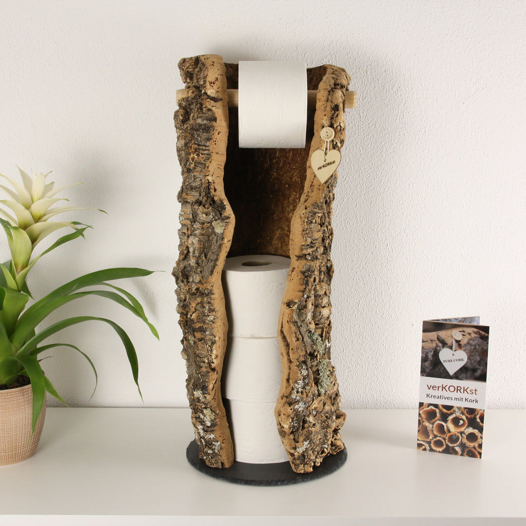 ZEITLOS ELEGANTES DESIGN - Die handmade WC Rollenhalter aus Kork von verKORKst verleihen Ihrem Zuhause Charme und individuellen Touch. Diese Klorollen Aufbewahrung überzeugt durch einzigartiges Design und ist ein absoluter Blickfang in jeder Toilette.