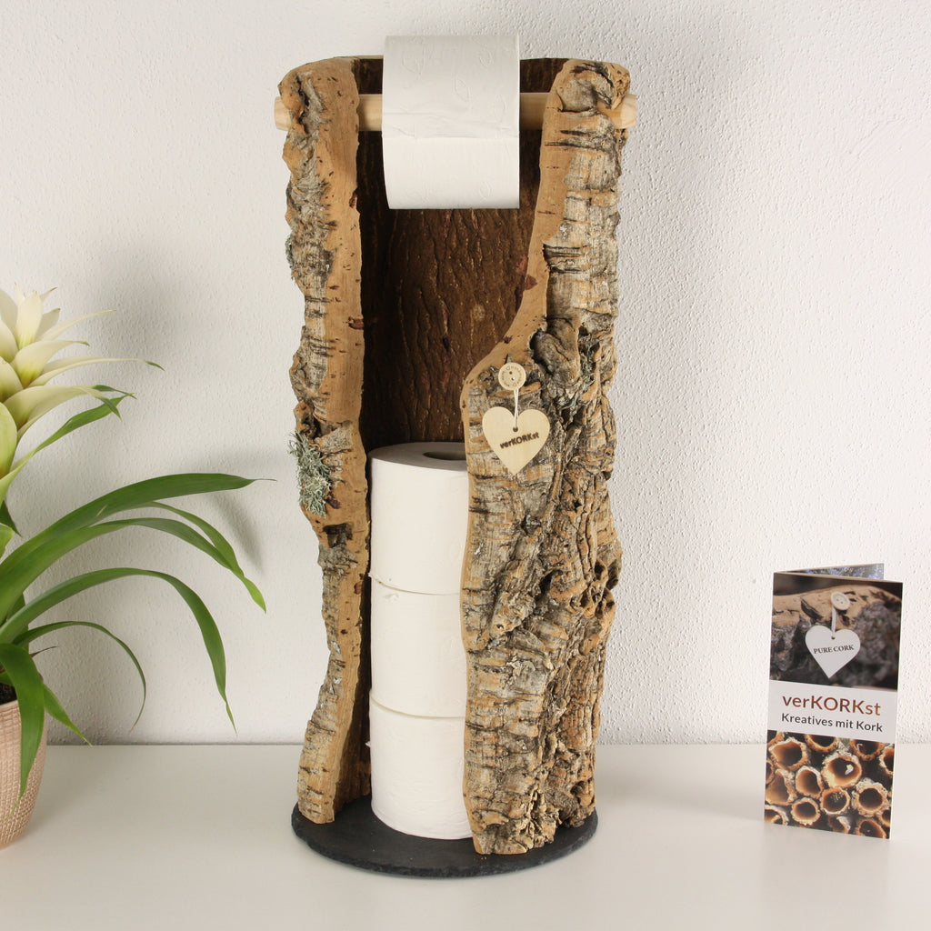 ZEITLOS ELEGANTES DESIGN - Die handmade WC Rollenhalter aus Kork von verKORKst verleihen Ihrem Zuhause Charme und individuellen Touch. Diese Klorollen Aufbewahrung überzeugt durch einzigartiges Design und ist ein absoluter Blickfang in jeder Toilette.