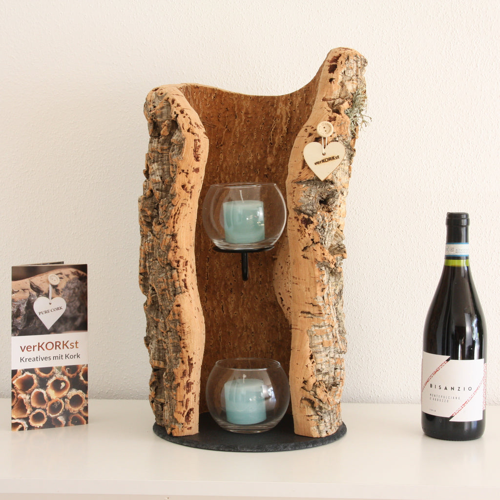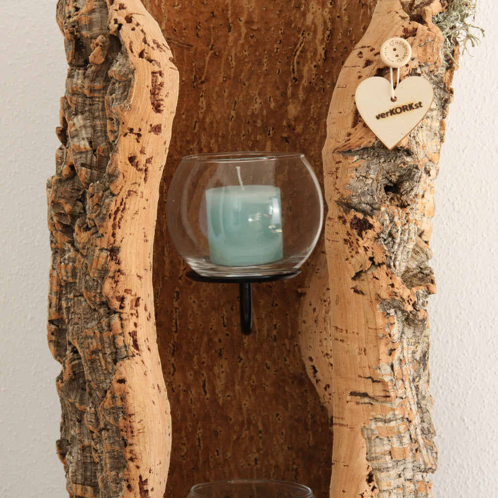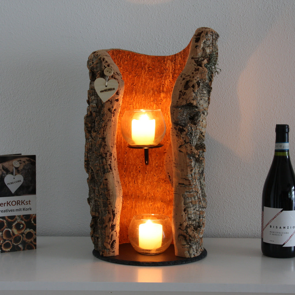 verKORKst – das sind besondere Unikate aus Rinden der spanischen Korkeiche. Von Windlichter und Wandkerzenhalter über Lampen bis zu hochwertigen Wohnzimmer Dekorationen – Kork kann viel mehr als nur Flaschen verschließen und Notizzettel halten.