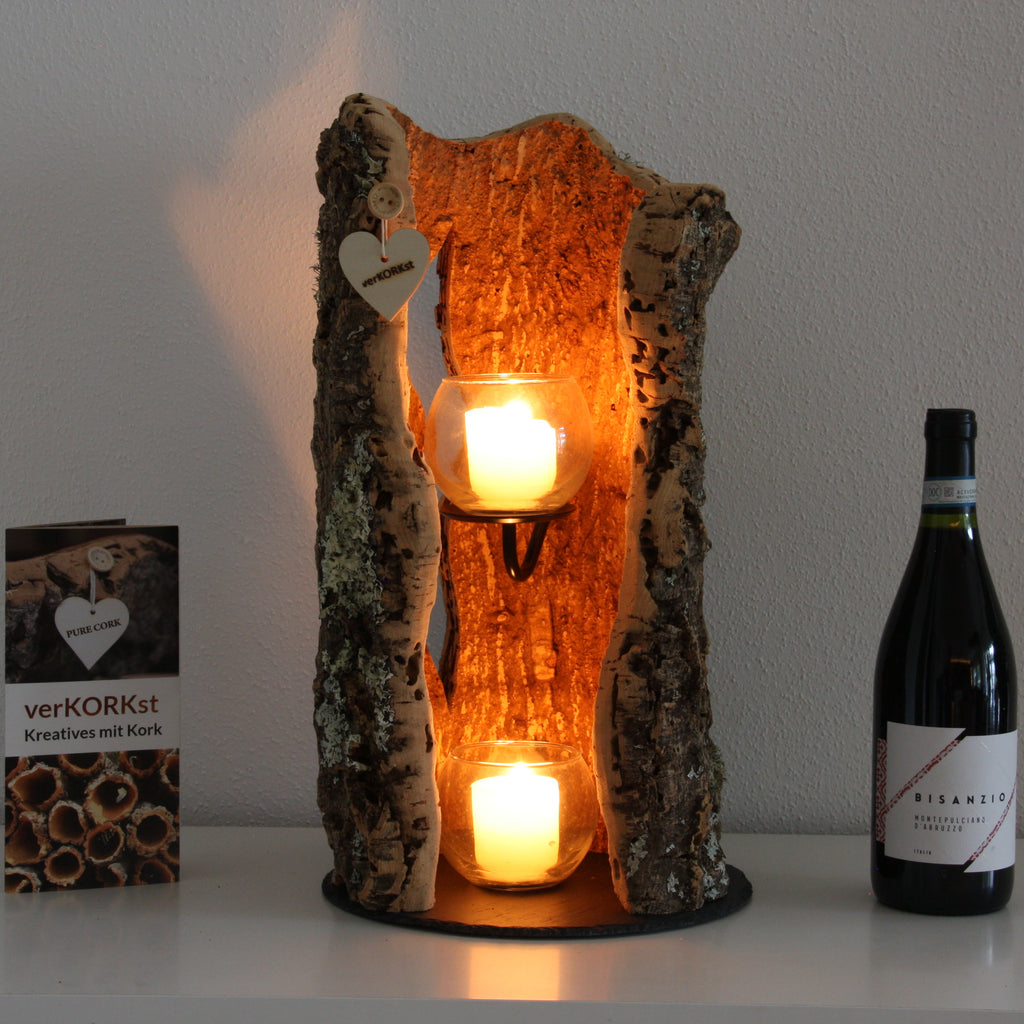 verKORKst – das sind besondere Unikate aus Rinden der spanischen Korkeiche. Von Windlichter und Wandkerzenhalter über Lampen bis zu hochwertigen Wohnzimmer Dekorationen – Kork kann viel mehr als nur Flaschen verschließen und Notizzettel halten.